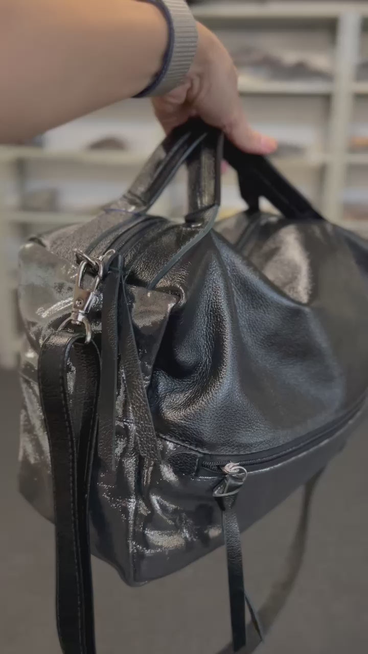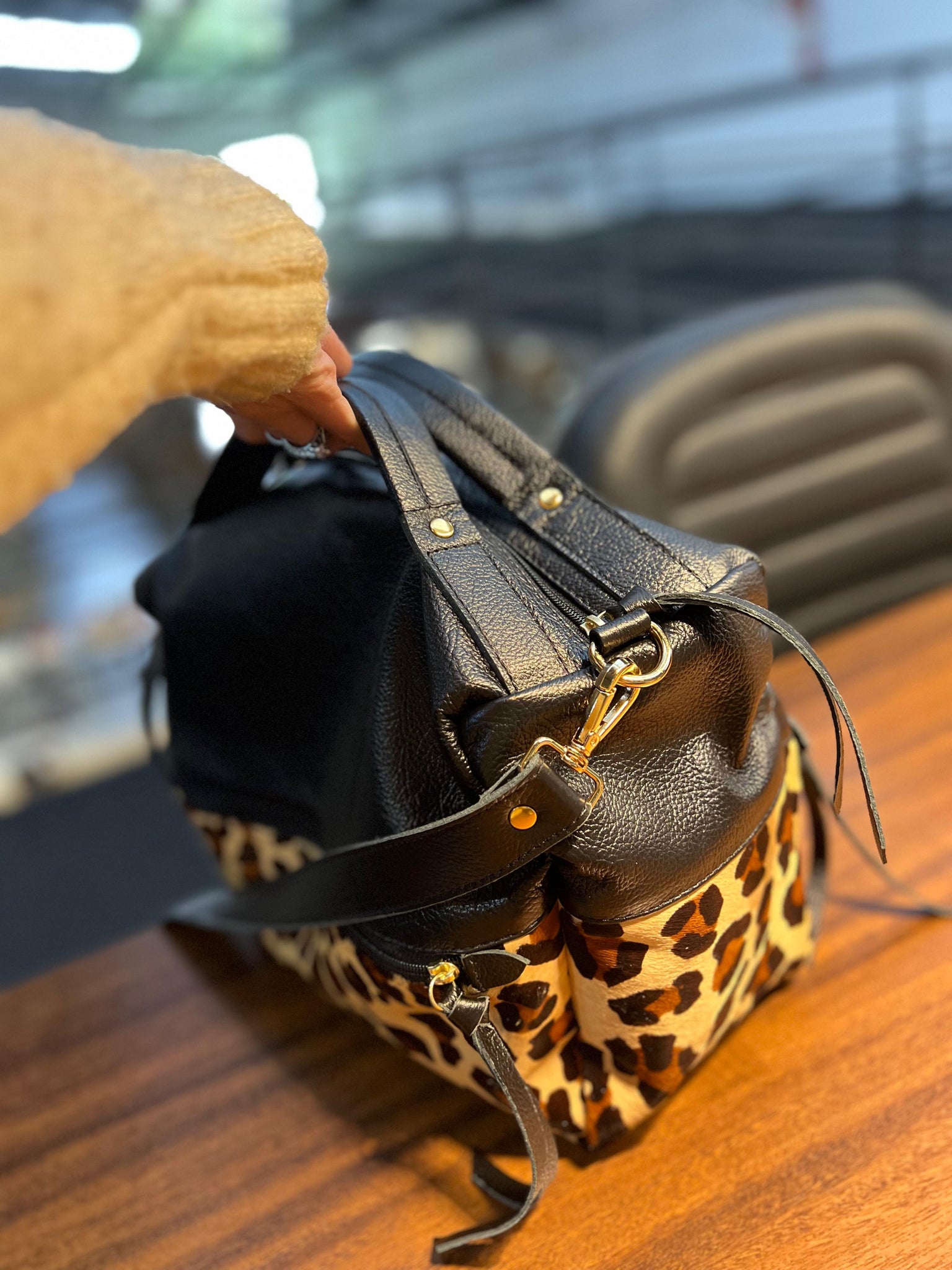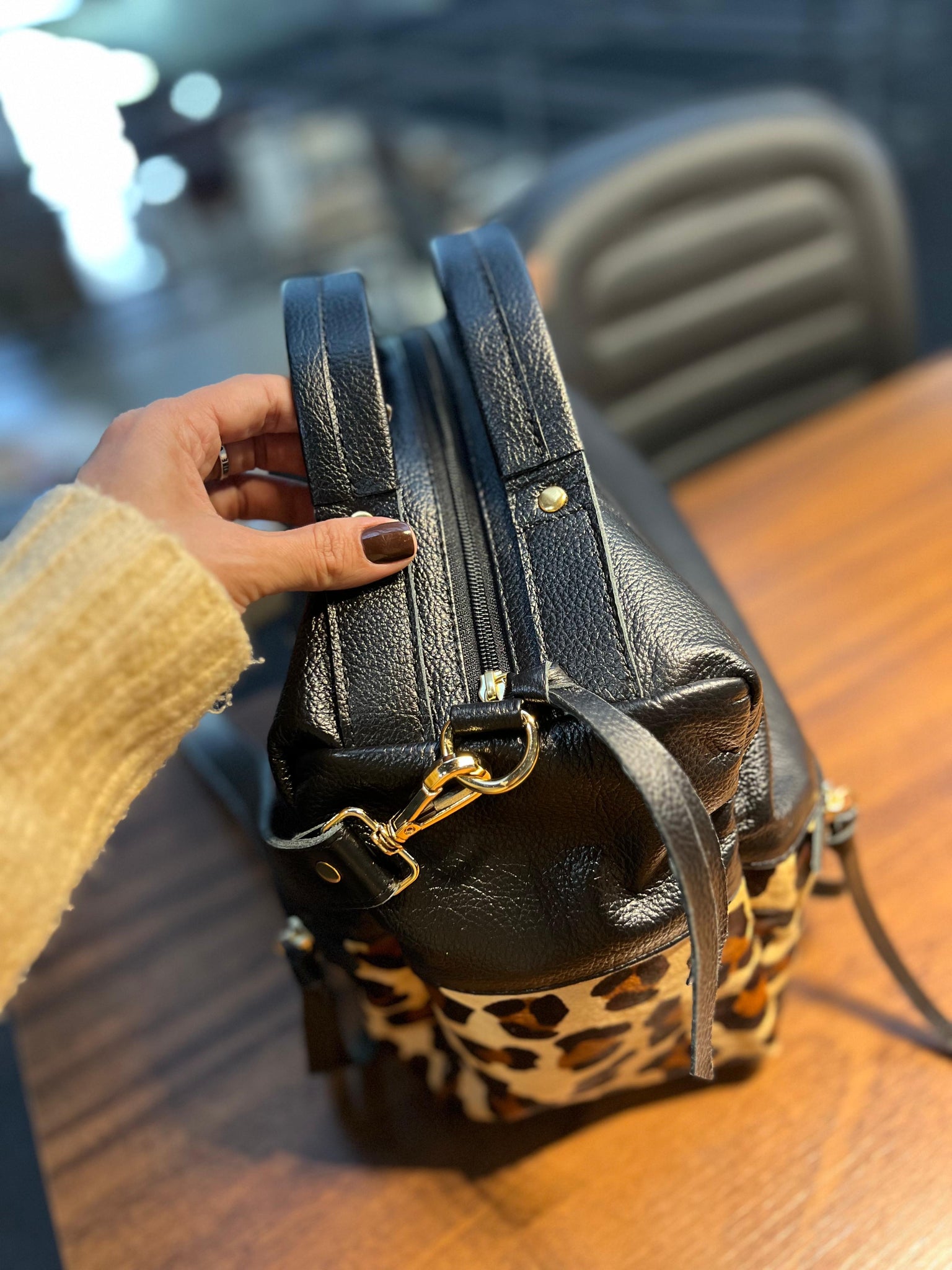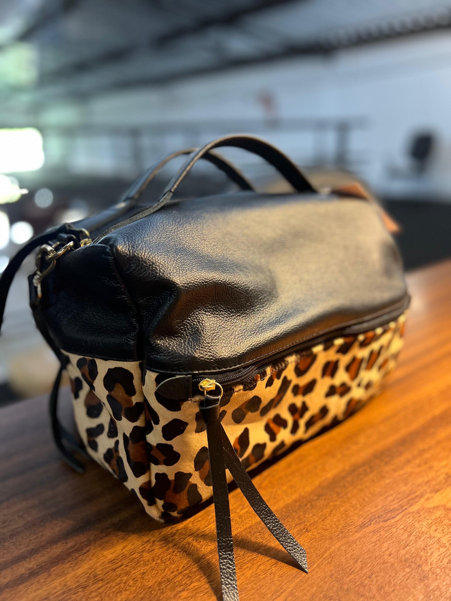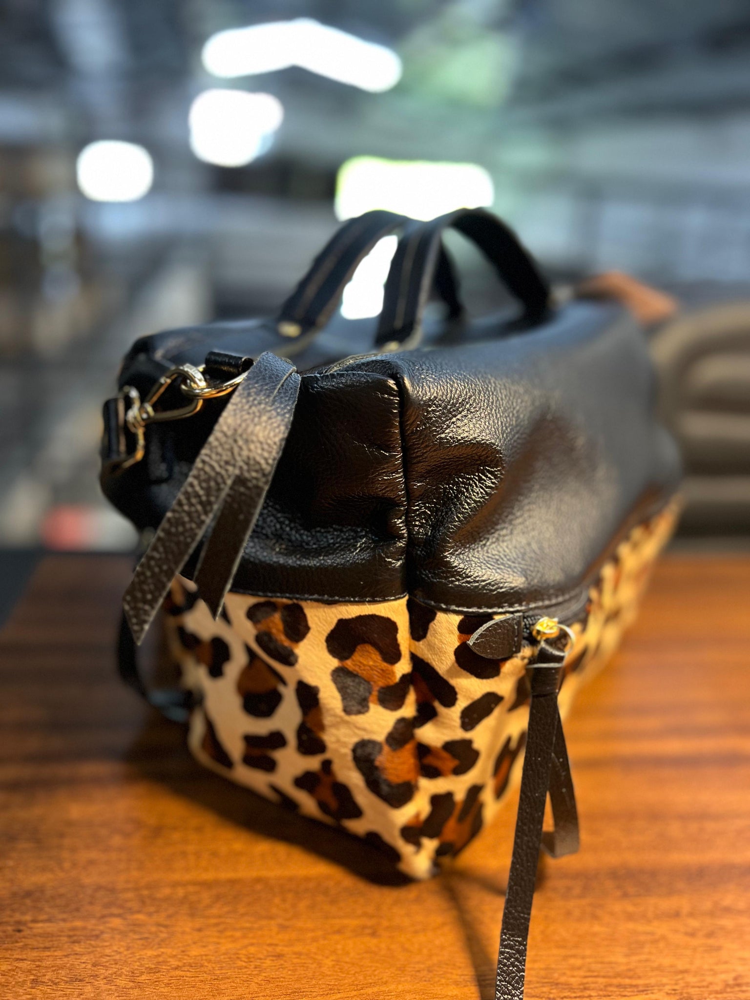 Essa é a bolsa SAVANA, todinha feita em couro legítimo e metais de luxo. Ela é grande, cabe tudo, tem 29 cm de largura por 21 cm de altura e 13 cm de profundidade.