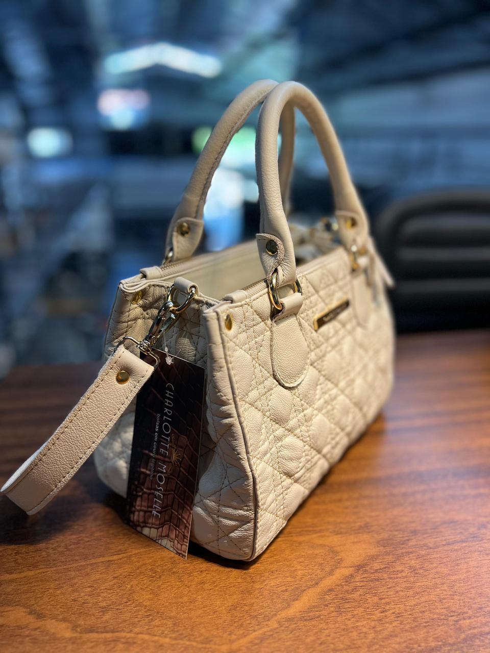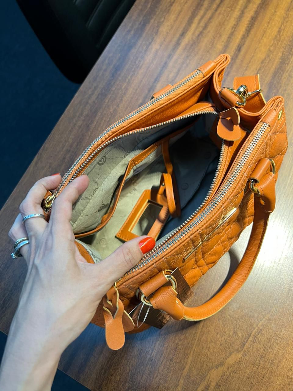 Essa é a bolsa TESS, novidade aqui na Charlotte Moselle, todinha feita em couro legítimo e metais de luxo. Ela é media, tem 28 cm de largura por 19 cm de altura e 14 de profundidade.