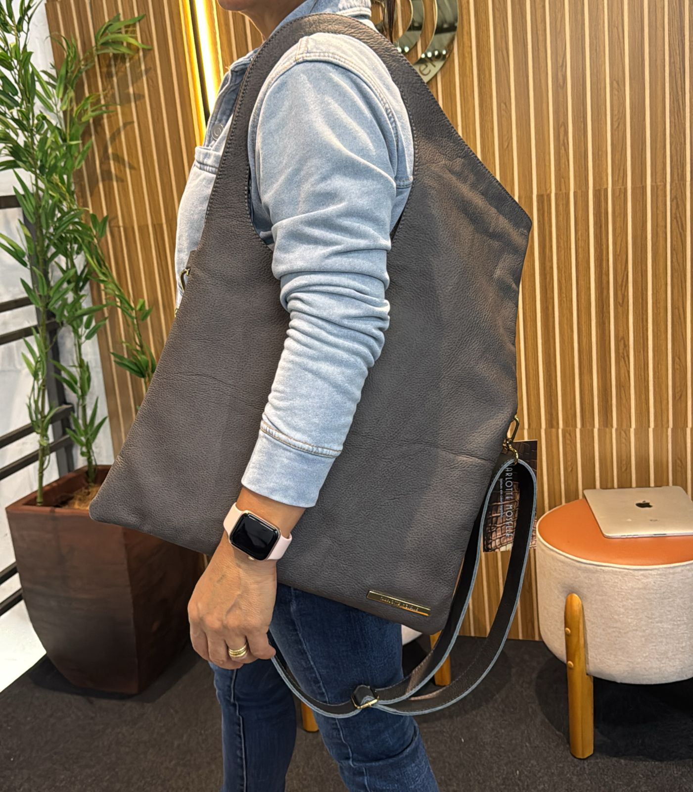 Essa é a bolsa ABU DHABI , novidade aqui na Charlotte Moselle. Ela é todinha feita em couro legítimo e metais de luxo. Ela é grande, tem 35 cm de largura por 48 cm de altura.