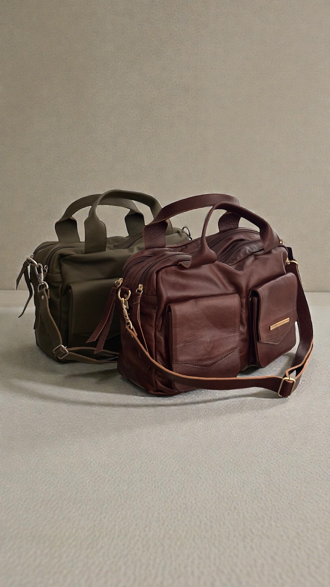Tem 3 bolsos externos, sendo 2 bolsos frontais fechados com botão magnético, 1 traseiro, fechado com zíper. Além disso, ela possui 2 bolsos principais também fechados com zíper. Dessa forma, dizemos que a bolsa COPENHAGEN tem duas divisórias principais.