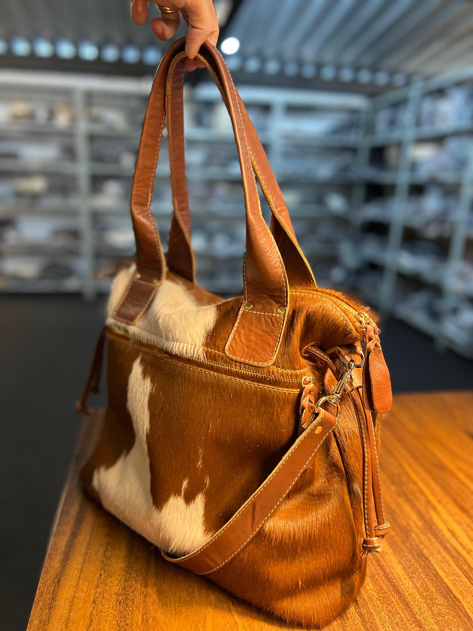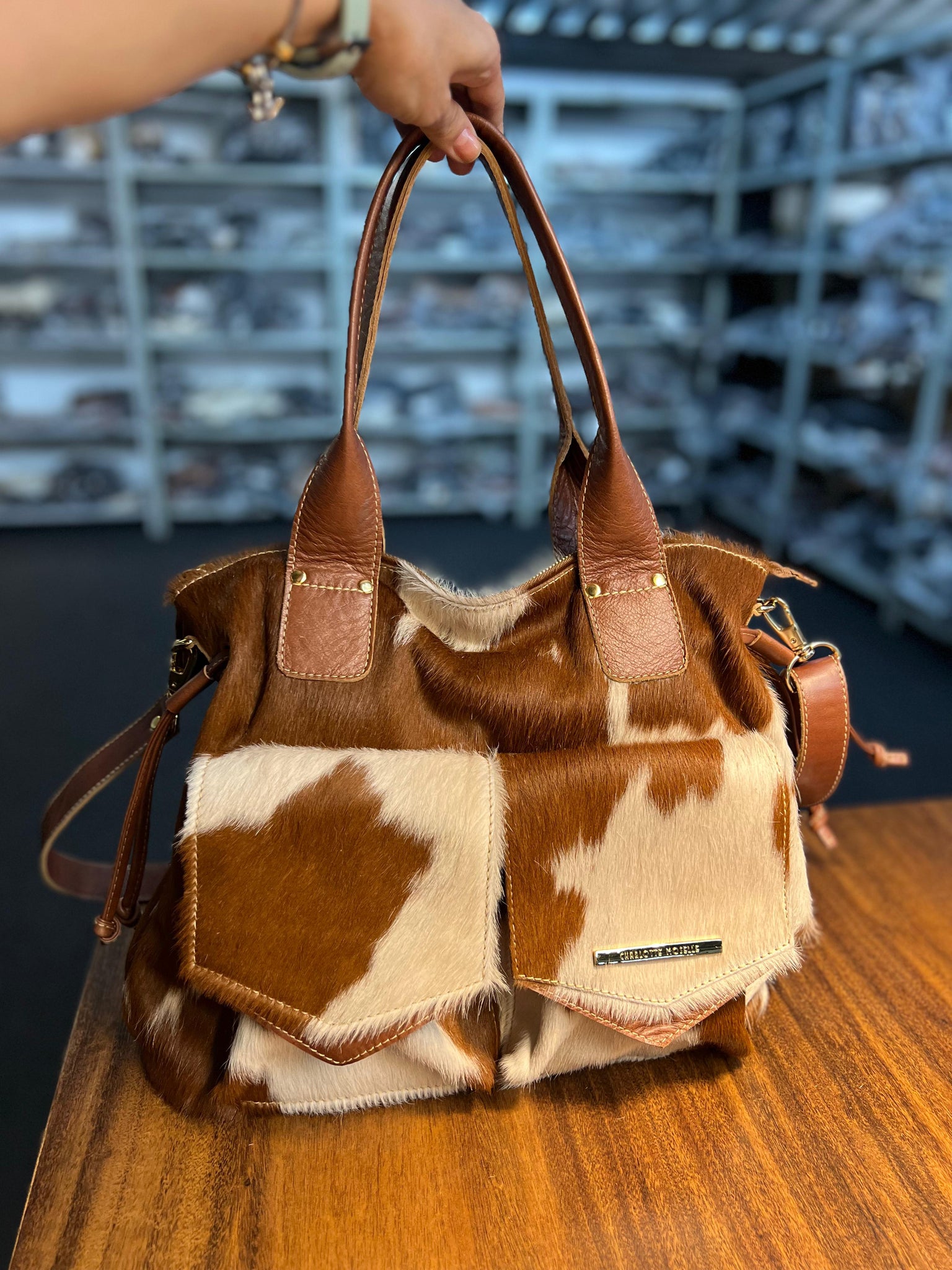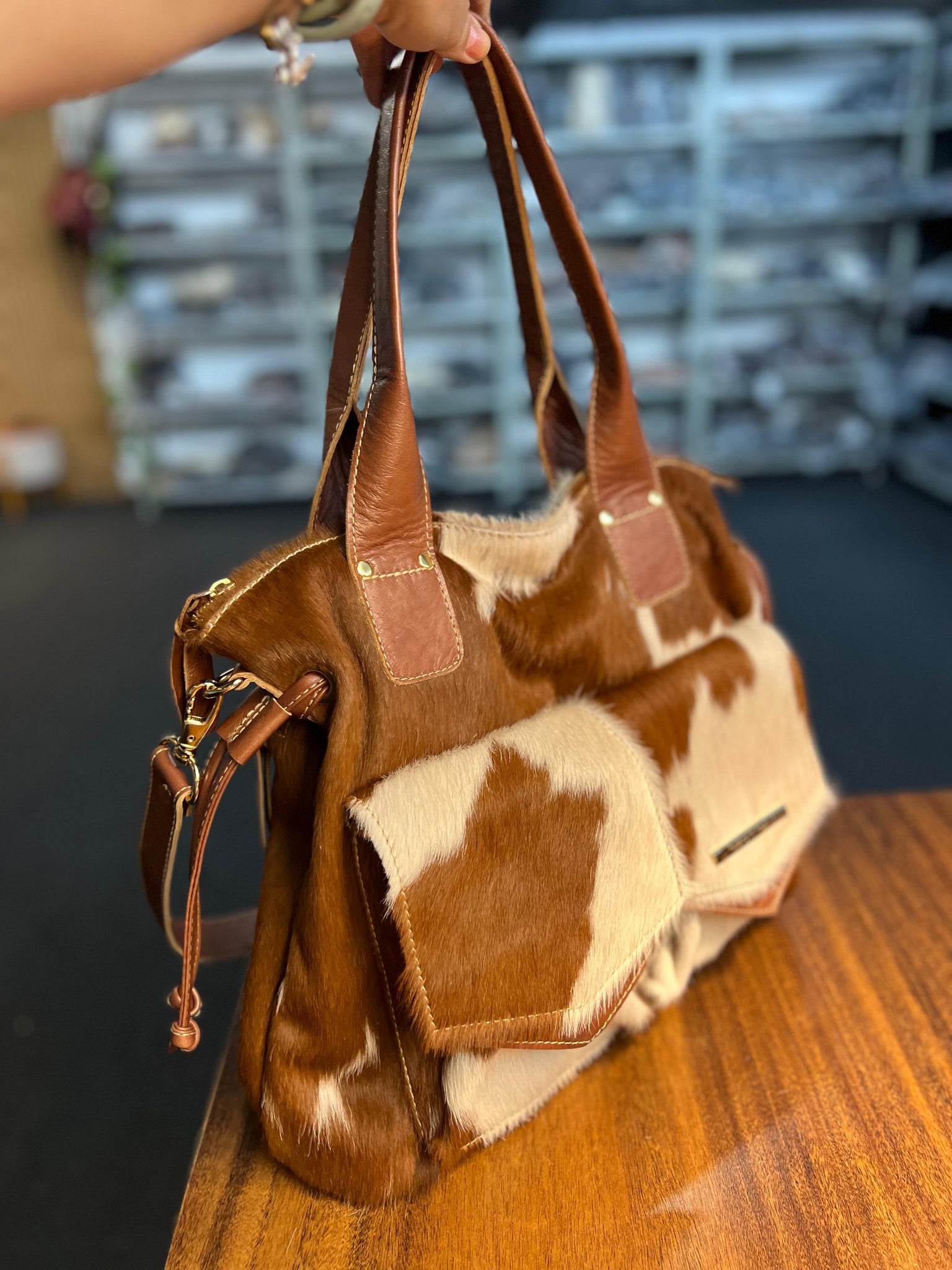 Essa é a bolsa COSTA RICA, feita com 100% couro legítimo e metais de luxo. Ela é grande, cabe tudo, tem 43 cm de largura por 36 cm de altura.